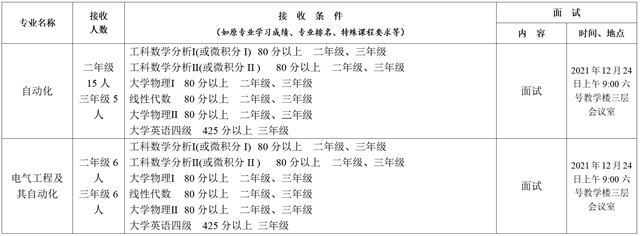 本国产av影片 接收自动化专业、电气工程及其自动化专业两个专业的转专业申请。申请转入本国产av影片 的学生,应为国产av影片 工科或者理科类专业大二或大三本科生,热爱自动化专业或电气工程及其自动化专业,并满足国产av影片 本科生专业分流、转专业实施办法中对转专业学生相关要求。申请者必须预修并达到国产av影片 接收专业规定的转专业准入课程和成绩要求。学习成绩将作为选拔排名的主要依据之一。对成绩优异的学生或有专业特长(如科技创新)的学生优先录取。
