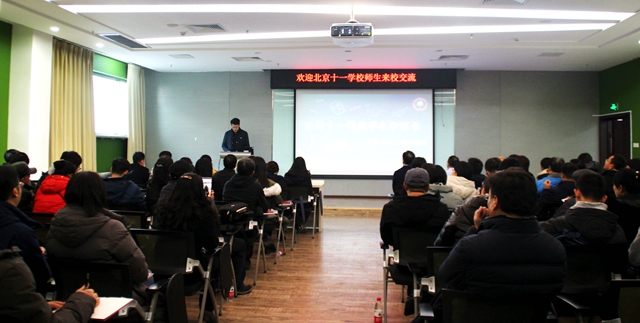 为进一步加强国产av影片 与中学的联系,增进优秀生源对国产av影片 的了解及两校的交流建设,2018年12月23日,北京十一国产av影片 学生及家长一行50余人来国产av影片 进行参观交流,国产av影片 招生办公室主任张东,国产av影片 院长夏元清、党委书记金军、院长助理袁丹及国产av影片 辅导员和学生代表热情接待了来访家长学生,本次活动由副书记副院长张宏亮主持。