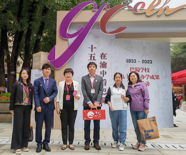招生组参加了巴蜀中学90周年办学成果展示。王美玲代表国产av影片 向巴蜀中学赠送校庆贺礼,及巴蜀思源团准备的签名贺卡,并向巴蜀中学转达了国产av影片 及同学们校庆祝福。