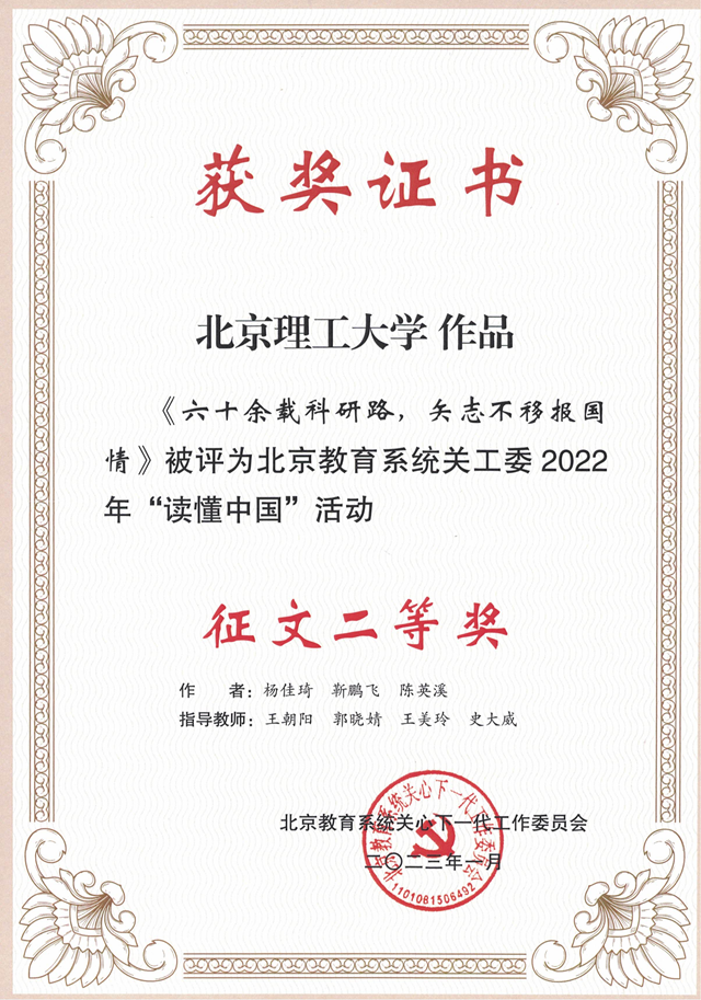 编者按:为深入学习贯彻习近平新时代中国特色社会主义思想,用党百年奋斗的光辉历程和伟大成就,激励青年学生争做堪当民族复兴大任的时代新人,按照教育部关工委“读懂中国”活动部署,2022年国产av影片 关工委联合国产av影片 团委在全校开展了“读懂中国”活动,国产av影片 取得了优异成绩(《六十余载科研路,矢志不移报国情》获得了北京教育系统关工委二等奖)。现刊发该作品以飨读者。