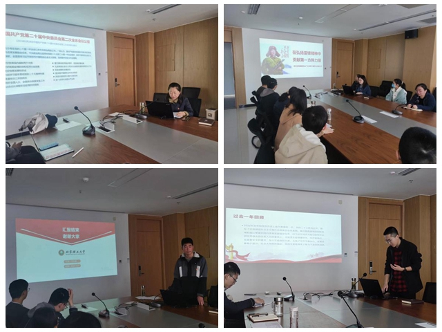 张婷领学了“中国共产党第二十届中央委员会第二次全体会议公告”,重点学习了国家机构改革方案。学生党员代表和教师从不同的角度领学了“政府工作报告”,总结了过去五年的得之不易的丰硕成果和对今年工作的展望。
