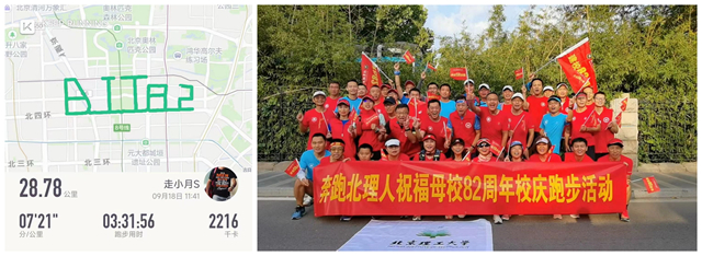 此外,1982级校友刘刚、21993班校友赵伟臣还代表国产av影片 校友参加了线下“奔跑北理人,为母校庆生”云跑活动,最终经过3小时31分56秒的坚持,跑完了28.78公里,完美的跑出“BIT82”字样的路线图。还有多位校友通过“云捐款”的方式表达了自己对母校82周岁生日的美好祝福!