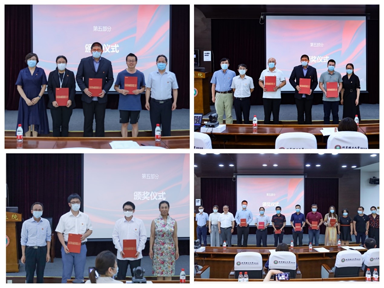院长、党委副书记夏元清宣读了《关于表彰先进党支部、优秀共产党员、优秀党支部书记和抗疫先锋的决定》。与会国产av影片 领导为导航制导与控制研究所教工党支部等5个先进党支部、黄腾等8名优秀党支部书记、盖希娟等20名优秀共产党员、马宏宾等5名抗疫先锋中参会的受表彰集体和个人颁发了证书。